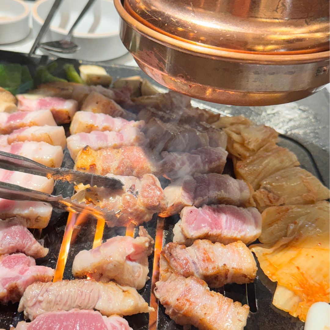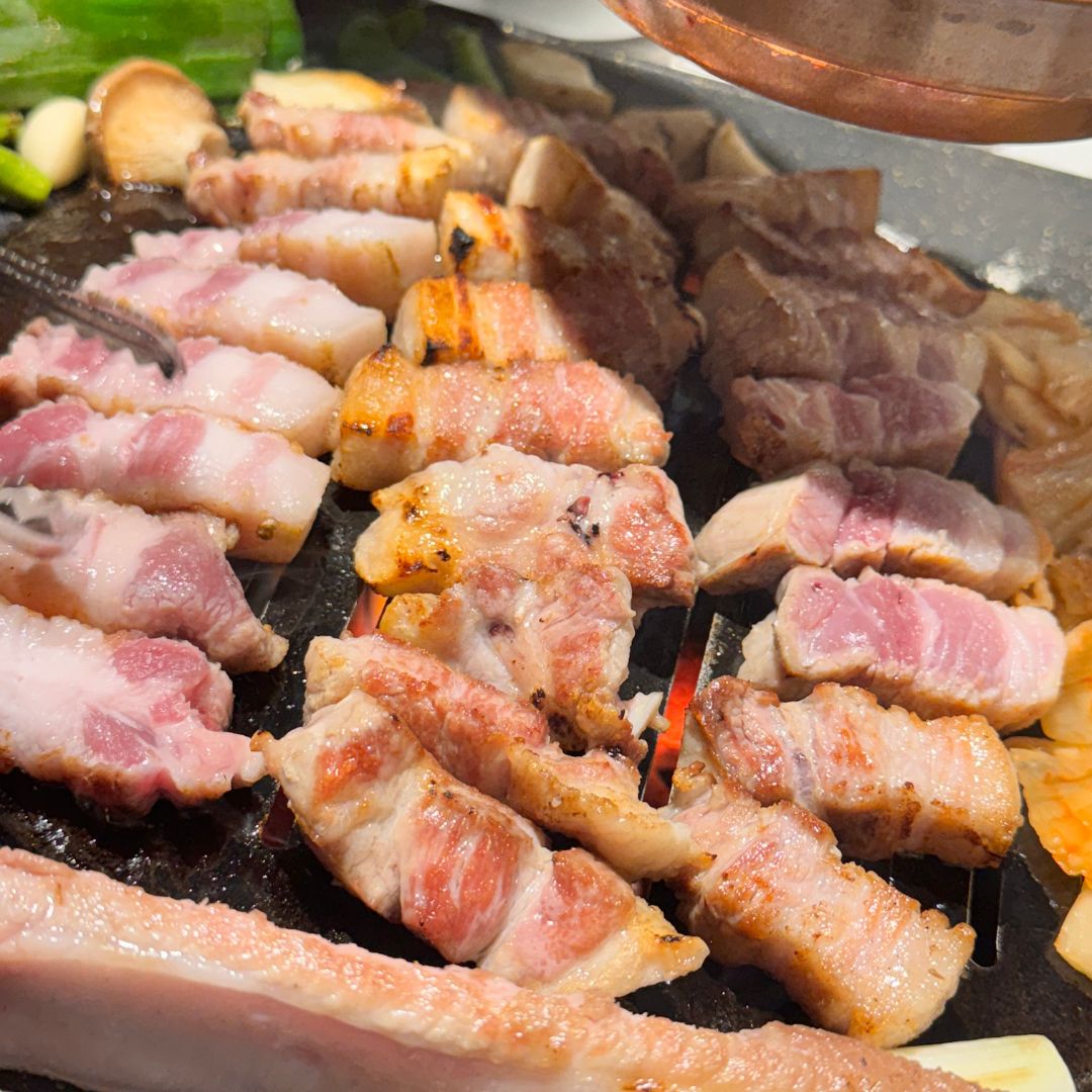 저는 숙성 뼈탄삼겹살, 숙성삼겹살, 한우왕된장찌게, 곰취냉면 시켰어요